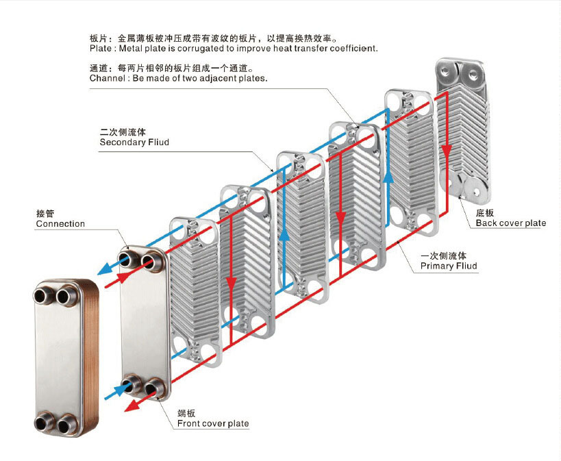 釬焊式熱交換器是用金屬板材疊裝構(gòu)成具有高效傳熱的薄壁傳熱面的間壁式熱交換器,這類型的換熱器在結(jié)構(gòu)上比較緊湊,同等體積的傳熱面積大,是目前使用極廣的一種換熱設(shè)備。那么,在了解如何優(yōu)選釬焊式熱交換器前,先看看它有那些準(zhǔn)要類型。